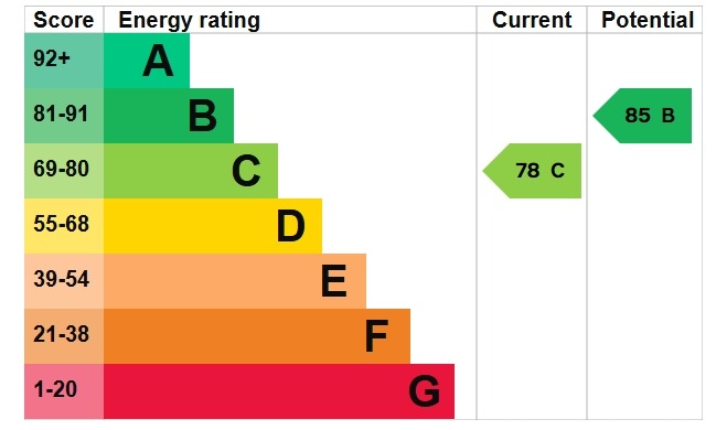 The well-finished shower room features elegant duck-egg blue tiles, adding a touch of luxury to the space. Both bedrooms are well-proportioned, with a stylish aesthetic that flows throughout the home.